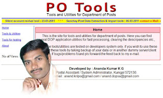 ANANDA KUMAR K G, System Administrator ,Kunigal SO who has been providing useful Tools for Sanchay Post has pooled all his Tools at: